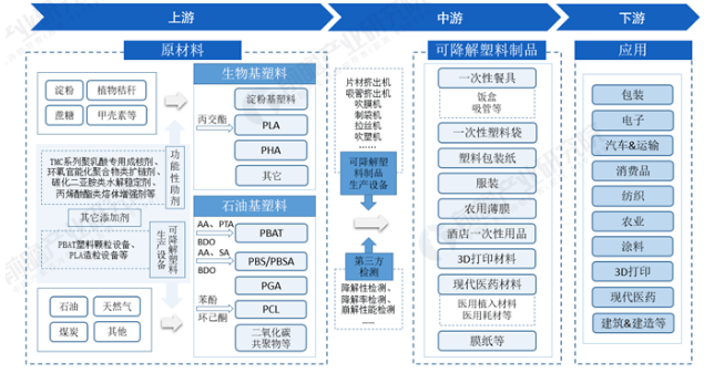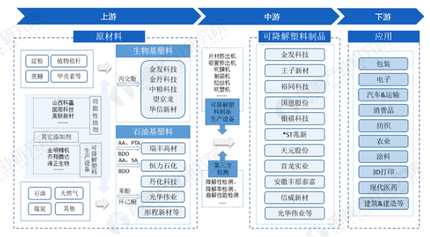 可降解塑料產(chǎn)業(yè)鏈全景梳理: